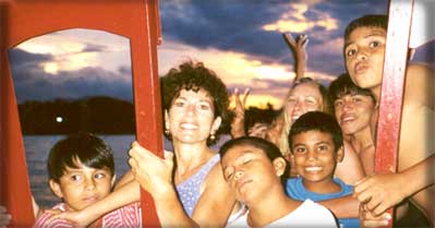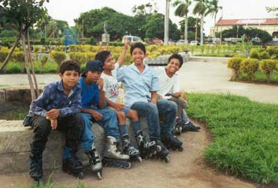 Luis, Jaime, Chepe, Cesar, and Oso take a rest from skating on "el malecon," the park which runs along the waterfront in the tourist section of Granada.